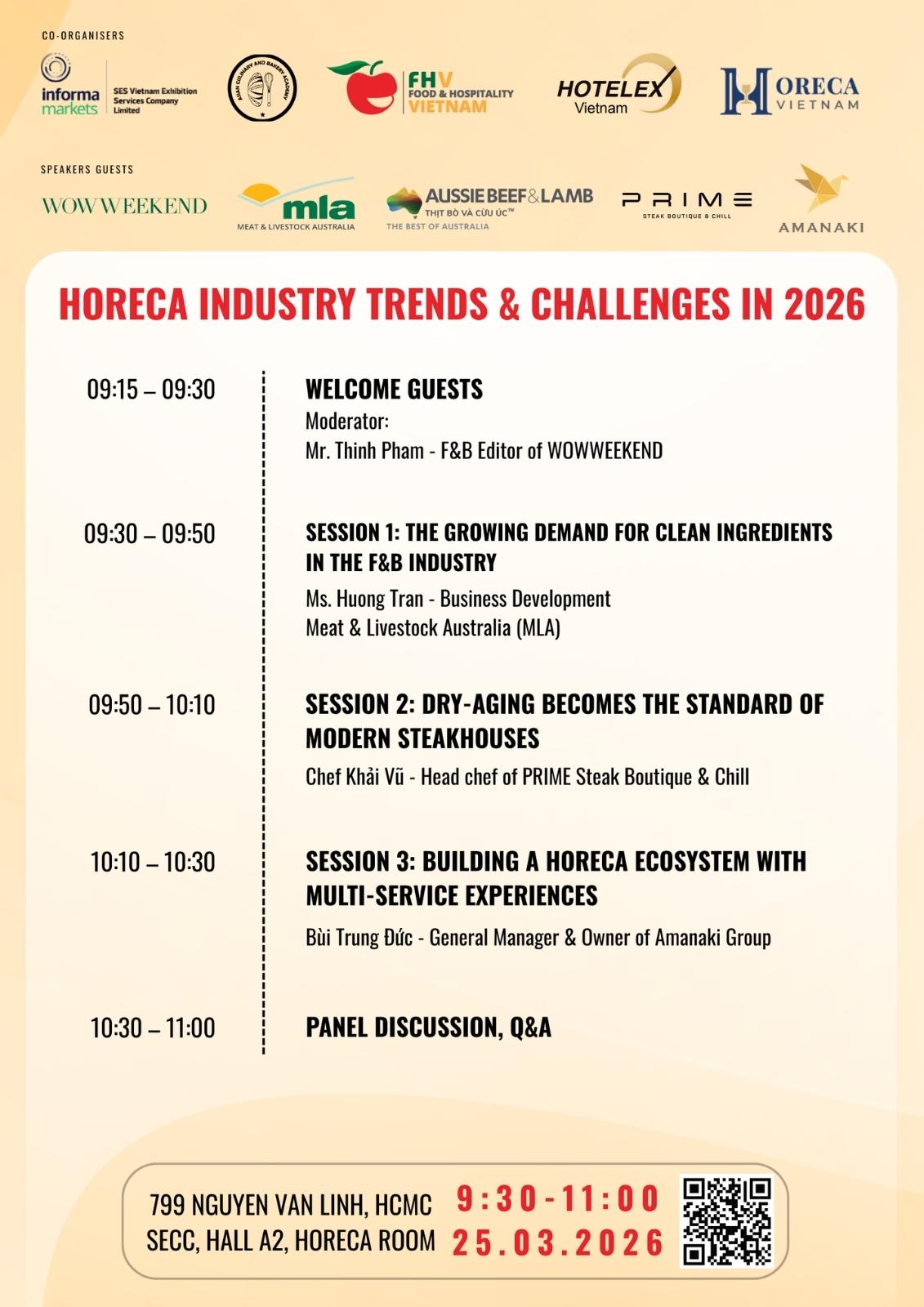 Nằm trong khuôn khổ của Food & Hospitality Vietnam 2026, nơi các giá trị về tay nghề và thương hiệu được tôn vinh, Aussie Beef & Lamb đồng hành cùng WOW WEEKEND mang đến một không gian thảo luận chuyên sâu dành riêng cho những nhà điều hành và chuyên gia ẩm thực thực thụ.